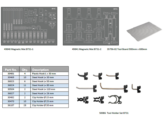 This work shop solutions tool board storage option is appropriate for the B731 truck clamping system.